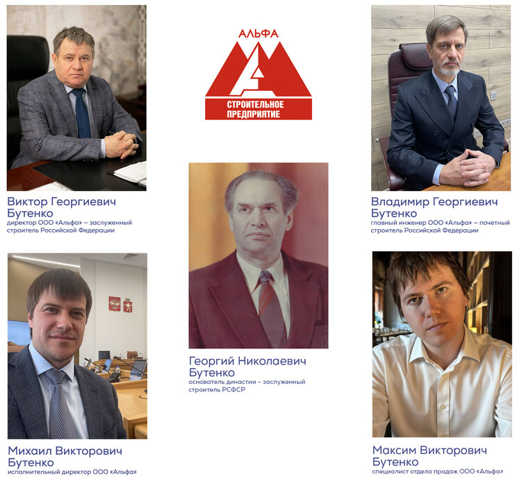 «Альфа» в своем роде — уникальное предприятие, в руководстве которого сосредоточены представители одной династии строителей. Её основоположник — заслуженный строитель РСФСР Георгий Николаевич Бутенко.