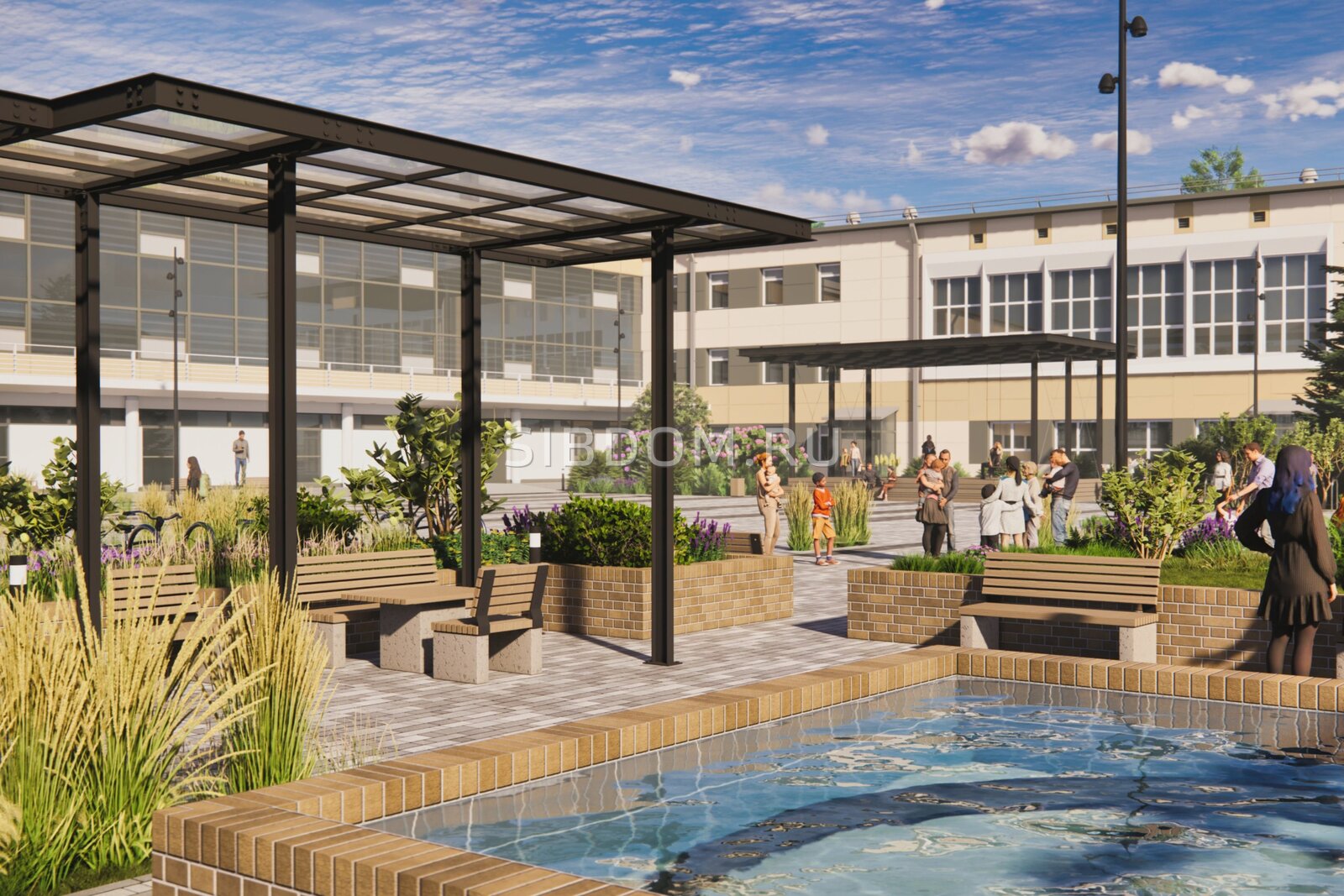 В Октябрьском районе реновируют площадь перед Культурным Центром на ул. Высотной (ГорДК). Её сделают более функциональной, зелёной и современной, но при этом сохранится мемориальная ценность. С торца здания появится зона для тихого отдыха с лежаками, необычные современные клумбы, навесы с качелями и сцена для уличных выступлений. Мемориал и фонтан впишут в обновлённое пространство.