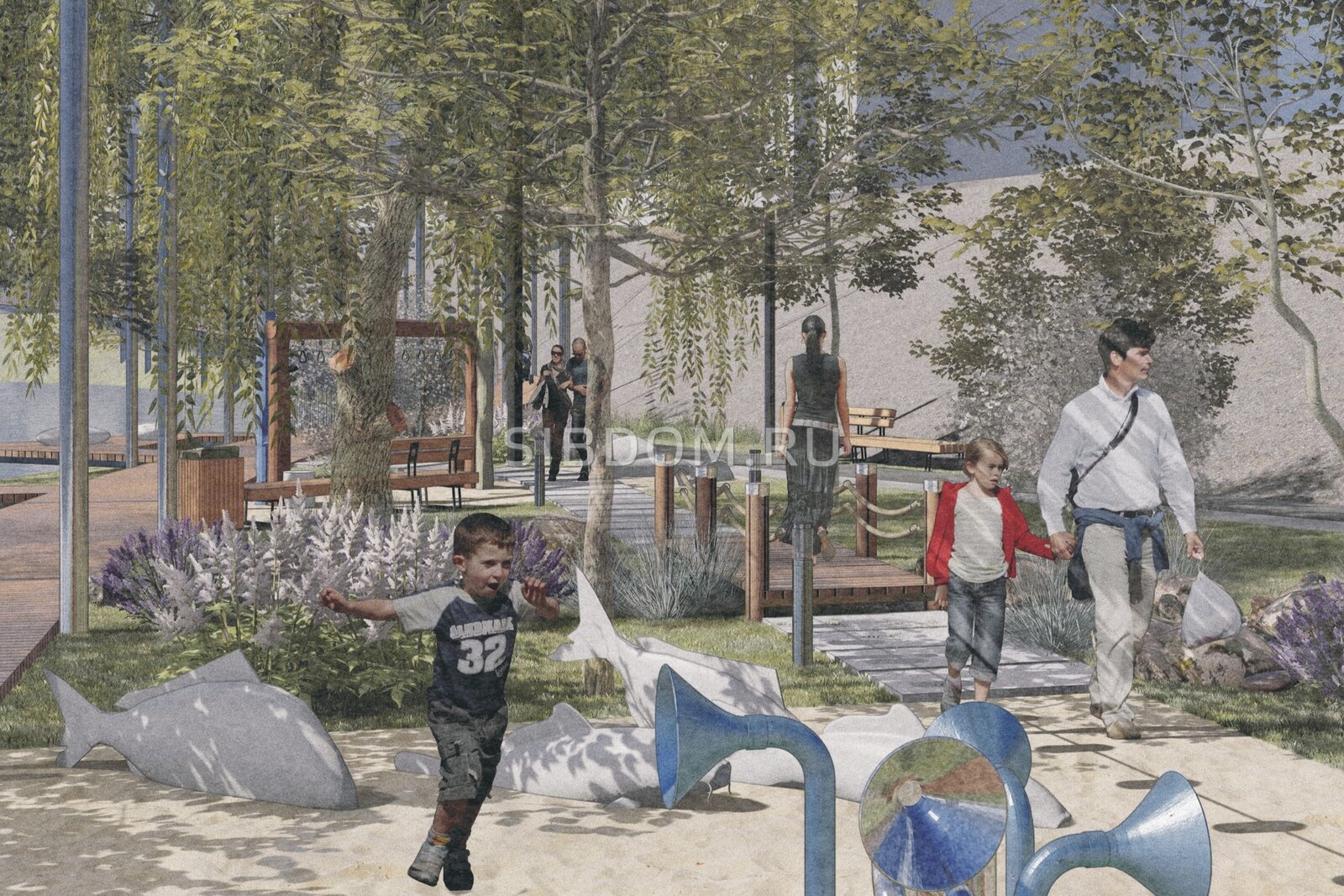 В Ленинском районе продолжат благоустройство набережной от Октябрьского моста до дома № 12 по ул. Северный проезд. Здесь появятся новые многоярусные смотровые площадки с балконами, прогулочные маршруты, деревья и кустарники, газоны, площадки для отдыха, игровые зоны. МАФы архитекторы предлагают выполнить в речной тематике, интегрировал образы морских обитателей, флоры, рыбацких сетей и рельефа.