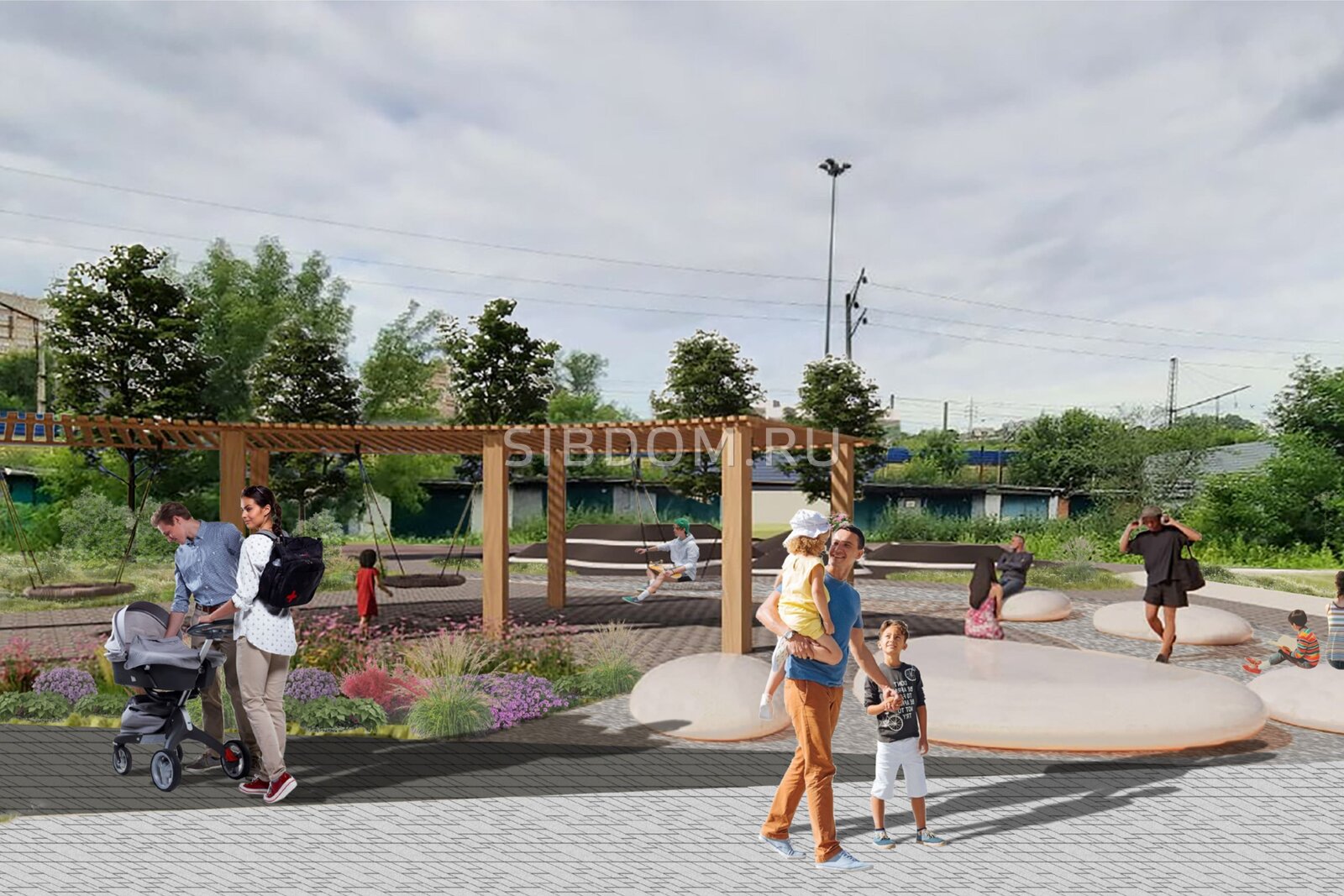 В Железнодорожном районе у дома на Ломоносова, 102 благоустроят уютный сквер с детской зоной, качелями и площадкой для выгула собак. Сейчас пространство, где проходят пешеходные пути до медцентра РЖД и остановок, представляет собой заросшую местность с «останками» гаражей и хаотичной парковкой.