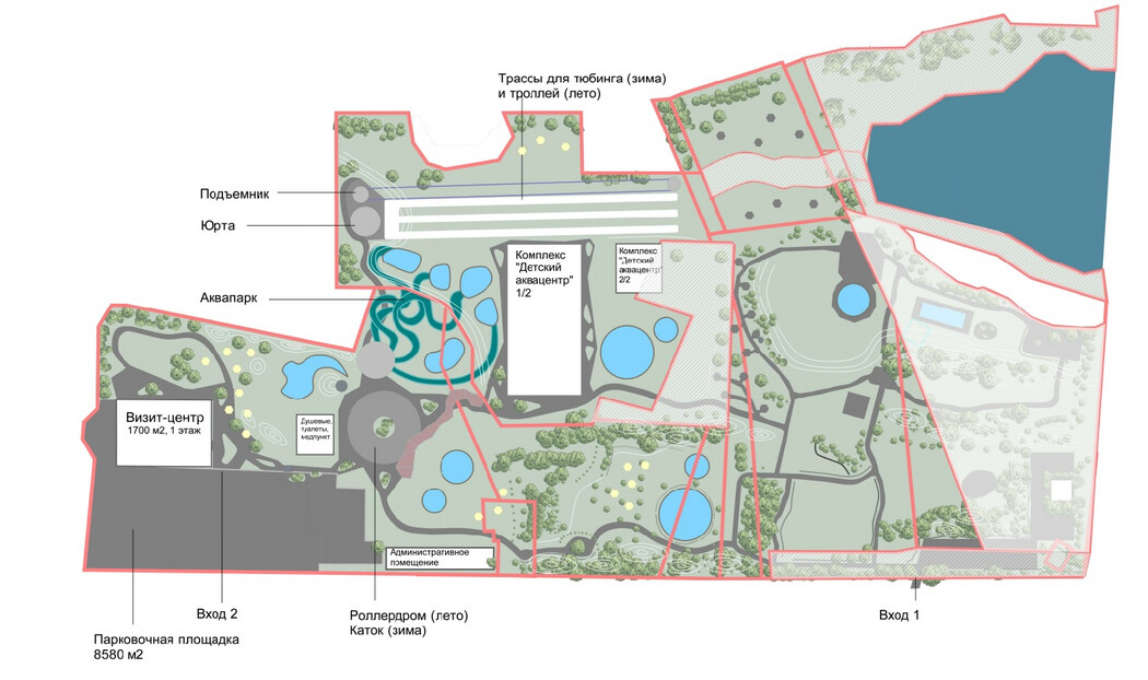 За 5,5 лет на территории построят визит-центр площадью 1,4 тыс. кв. м, новую дорожно-тропиночную сеть, комплекс бассейнов, открытый аквапарк, трассы для тюбинга, роллердром, который зимой будет использоваться как каток (его площадь составит не менее 800 кв. м), площадки для фестивалей, выставочных садов, проведут озеленение и освещение. Инвестиции оценили в 500 млн рублей.