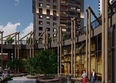 Архитектура микрорайона ЧИЖИ в стиле organic продолжается и в благоустройстве территории. Из оцилиндрованного бревна запроектированы накладные элементы на фасадах жилых домов, включающиеся в тонкую игру цветов, материалов и текстур. Это архитектурное решение применяется впервые в России.