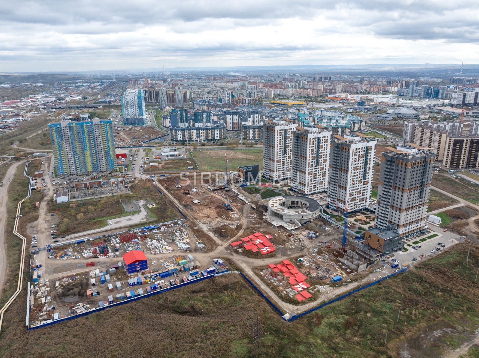 В составе микрорайона в двух очередях строительства: 9 монолитно-кирпичных домов высотой 14-23 этажа, подземная парковка с доступом на лифте с этажа, встроенные и пристроенные помещения коммерческой недвижимости, отдельно стоящие офисные здания, в том числе с эксплуатируемыми кровлями, по периметру и в центре микрорайона.