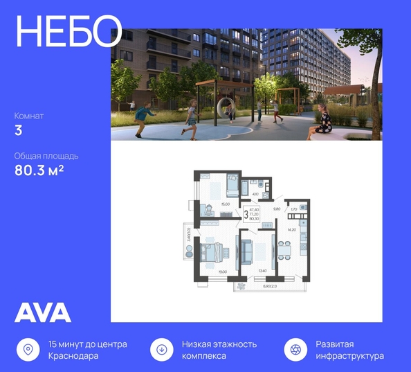 <p>Продается 3-комнатная квартира в новостройке ЖК «Небо» по адресу : город Краснодар, Ярославская улица, Литер Литер 3. Общая площадь квартиры - 80.3 кв. м., этаж 1 из 12. Без отделки, но с возможностью заказать отделку.</p>