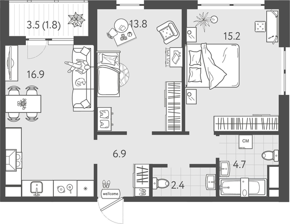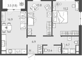 Продам 2-комнатную 61.5 кв.м. 20/24 этаж, монолит-кирпич, Краснодар, Колхозная ул, 5/2 к2. Номер объявления SD24-300840.