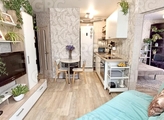 30 м², планировка «кухня-гостиная + спальня + балкон». Квартира продаётся с мебелью и бытовой техникой. Монолитный дом 2014 года постройки, закрытая территория с парковкой за шлагбаумом, детская и спортивная площадка.