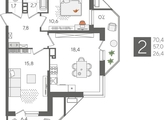 В продаже 2-комнатная квартира от застройщика! ЖК «Рекорд» 2 очередь, г. Краснодар, Литер 3 Срок сдачи: 4 кв. 2026, общей площадью 70.4 кв.м., на 11 этаже.
