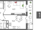 В продаже 1-комнатная квартира от застройщика! ЖК «Рекорд» 2 очередь, г. Краснодар, Литер 3 Срок сдачи: 4 кв. 2026, общей площадью 44.5 кв.м., на 23 этаже.