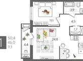 В продаже 1-комнатная квартира от застройщика! ЖК «Рекорд» 2 очередь, г. Краснодар, Литер 4 Срок сдачи: 4 кв. 2026, общей площадью 50.4 кв.м., на 2 этаже.