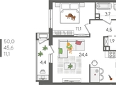 В продаже 1-комнатная квартира от застройщика! ЖК «Рекорд» 2 очередь, г. Краснодар, Литер 4 Срок сдачи: 4 кв. 2026, общей площадью 50 кв.м., на 7 этаже.