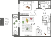 В продаже 1-комнатная квартира от застройщика! ЖК «Рекорд» 2 очередь, г. Краснодар, Литер 4 Срок сдачи: 4 кв. 2026, общей площадью 49.7 кв.м., на 16 этаже.