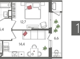 В продаже 1-комнатная квартира от застройщика! ЖК «Рекорд» 2 очередь, г. Краснодар, Литер 4 Срок сдачи: 4 кв. 2026, общей площадью 44.6 кв.м., на 22 этаже.