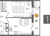 В продаже 1-комнатная квартира от застройщика! ЖК «Рекорд» 2 очередь, г. Краснодар, Литер 4 Срок сдачи: 4 кв. 2026, общей площадью 44.6 кв.м., на 23 этаже.