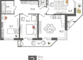 В продаже 3-комнатная квартира от застройщика! ЖК «Рекорд» 2 очередь, г. Краснодар, Литер 5 Срок сдачи: 4 кв. 2026, общей площадью 88.6 кв.м., на 2 этаже.