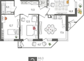 В продаже 3-комнатная квартира от застройщика! ЖК «Рекорд» 2 очередь, г. Краснодар, Литер 5 Срок сдачи: 4 кв. 2026, общей площадью 88 кв.м., на 7 этаже.
