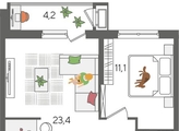 В продаже 1-комнатная квартира от застройщика! ЖК «Рекорд» 2 очередь, г. Краснодар, Литер 5 Срок сдачи: 4 кв. 2026, общей площадью 48.5 кв.м., на 11 этаже.