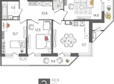 В продаже 3-комнатная квартира от застройщика! ЖК «Рекорд» 2 очередь, г. Краснодар, Литер 5 Срок сдачи: 4 кв. 2026, общей площадью 90.9 кв.м., на 22 этаже.