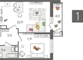 В продаже 1-комнатная квартира от застройщика! ЖК «Рекорд» 2 очередь, г. Краснодар, Литер 5 Срок сдачи: 4 кв. 2026, общей площадью 47.4 кв.м., на 11 этаже.