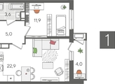 В продаже 1-комнатная квартира от застройщика! ЖК «Рекорд» 2 очередь, г. Краснодар, Литер 5 Срок сдачи: 4 кв. 2026, общей площадью 47.4 кв.м., на 16 этаже.