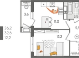 В продаже 1-комнатная квартира от застройщика! ЖК «Рекорд» 2 очередь, г. Краснодар, Литер 5 Срок сдачи: 4 кв. 2026, общей площадью 36.2 кв.м., на 18 этаже.