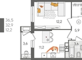 В продаже 1-комнатная квартира от застройщика! ЖК «Рекорд» 2 очередь, г. Краснодар, Литер 5 Срок сдачи: 4 кв. 2026, общей площадью 36.5 кв.м., на 3 этаже.