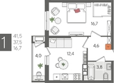 В продаже 1-комнатная квартира от застройщика! ЖК «Рекорд» 2 очередь, г. Краснодар, Литер 5 Срок сдачи: 4 кв. 2026, общей площадью 41.5 кв.м., на 10 этаже.