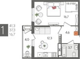 В продаже 1-комнатная квартира от застройщика! ЖК «Рекорд» 2 очередь, г. Краснодар, Литер 5 Срок сдачи: 4 кв. 2026, общей площадью 41.3 кв.м., на 13 этаже.