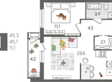 В продаже 1-комнатная квартира от застройщика! ЖК «Рекорд» 2 очередь, г. Краснодар, Литер 6 Срок сдачи: 4 кв. 2026, общей площадью 49.3 кв.м., на 2 этаже.