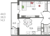 В продаже 1-комнатная квартира от застройщика! ЖК «Рекорд» 2 очередь, г. Краснодар, Литер 6 Срок сдачи: 4 кв. 2026, общей площадью 44 кв.м., на 23 этаже.