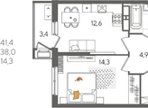 В продаже 1-комнатная квартира от застройщика! ЖК «Рекорд» 2 очередь, г. Краснодар, Литер 6 Срок сдачи: 4 кв. 2026, общей площадью 41.4 кв.м., на 24 этаже.