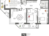 В продаже 3-комнатная квартира от застройщика! ЖК «Рекорд» 2 очередь, г. Краснодар, Литер 6 Срок сдачи: 4 кв. 2026, общей площадью 88 кв.м., на 3 этаже.