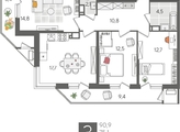 В продаже 3-комнатная квартира от застройщика! ЖК «Рекорд» 2 очередь, г. Краснодар, Литер 6 Срок сдачи: 4 кв. 2026, общей площадью 90.9 кв.м., на 23 этаже.