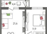 В продаже 1-комнатная квартира от застройщика! ЖК «Рекорд» 2 очередь, г. Краснодар, Литер 1 Срок сдачи: 4 кв. 2026, общей площадью 46.5 кв.м., на 11 этаже.
