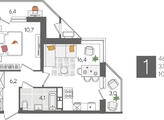 В продаже 1-комнатная квартира от застройщика! ЖК «Рекорд» 2 очередь, г. Краснодар, Литер 1 Срок сдачи: 4 кв. 2026, общей площадью 46.8 кв.м., на 11 этаже.