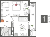 В продаже 1-комнатная квартира от застройщика! ЖК «Рекорд» 2 очередь, г. Краснодар, Литер 1 Срок сдачи: 4 кв. 2026, общей площадью 44.1 кв.м., на 22 этаже.
