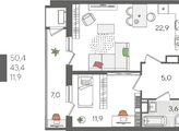 В продаже 1-комнатная квартира от застройщика! ЖК «Рекорд» 2 очередь, г. Краснодар, Литер 1 Срок сдачи: 4 кв. 2026, общей площадью 50.4 кв.м., на 22 этаже.
