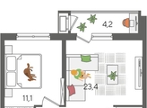 В продаже 1-комнатная квартира от застройщика! ЖК «Рекорд» 2 очередь, г. Краснодар, Литер 1 Срок сдачи: 4 кв. 2026, общей площадью 48.5 кв.м., на 11 этаже.