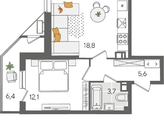 В продаже 1-комнатная квартира от застройщика! ЖК «Рекорд» 2 очередь, г. Краснодар, Литер 2 Срок сдачи: 4 кв. 2026, общей площадью 49.4 кв.м., на 7 этаже.
