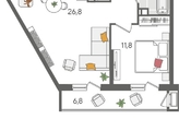 В продаже 1-комнатная квартира от застройщика! ЖК «Рекорд» 2 очередь, г. Краснодар, Литер 2 Срок сдачи: 4 кв. 2026, общей площадью 55.9 кв.м., на 8 этаже.