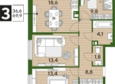 В продаже 3-комнатная квартира от застройщика! Мкр. «DOGMA PARK» г. Краснодар, Литер 7 Срок сдачи: 4 кв. 2026, общей площадью 68.6 кв.м., на 7 этаже.