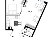 В продаже 1-комнатная квартира от застройщика! Мкр. «DOGMA PARK» г. Краснодар, Литер 13 Срок сдачи: 4 кв. 2027, общей площадью 46.4 кв.м., на 9 этаже.