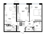 В продаже 2-комнатная квартира от застройщика! Мкр. «DOGMA PARK» г. Краснодар, Литер 13 Срок сдачи: 4 кв. 2027, общей площадью 59.9 кв.м., на 14 этаже.