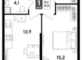 В продаже 1-комнатная квартира от застройщика! Мкр. «DOGMA PARK» г. Краснодар, Литер 15 Срок сдачи: 4 кв. 2027, общей площадью 39.8 кв.м., на 2 этаже.