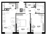 В продаже 2-комнатная квартира от застройщика! Мкр. «DOGMA PARK» г. Краснодар, Литер 15 Срок сдачи: 4 кв. 2027, общей площадью 59.6 кв.м., на 7 этаже.