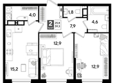 В продаже 2-комнатная квартира от застройщика! Мкр. «DOGMA PARK» г. Краснодар, Литер 15 Срок сдачи: 4 кв. 2027, общей площадью 59.3 кв.м., на 12 этаже.