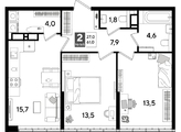 В продаже 2-комнатная квартира от застройщика! Мкр. «DOGMA PARK» г. Краснодар, Литер 15 Срок сдачи: 4 кв. 2027, общей площадью 61 кв.м., на 16 этаже.