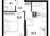 В продаже 1-комнатная квартира от застройщика! Мкр. «DOGMA PARK» г. Краснодар, Литер 16 Срок сдачи: 4 кв. 2027, общей площадью 36.8 кв.м., на 2 этаже.