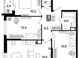 В продаже 3-комнатная квартира от застройщика! Мкр. «DOGMA PARK» г. Краснодар, Литер 16 Срок сдачи: 4 кв. 2027, общей площадью 69.7 кв.м., на 11 этаже.