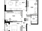 В продаже 3-комнатная квартира от застройщика! Мкр. «DOGMA PARK» г. Краснодар, Литер 17 Срок сдачи: 4 кв. 2027, общей площадью 69.9 кв.м., на 2 этаже.