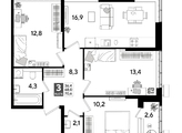 В продаже 3-комнатная квартира от застройщика! Мкр. «DOGMA PARK» г. Краснодар, Литер 17 Срок сдачи: 4 кв. 2027, общей площадью 69.5 кв.м., на 2 этаже.